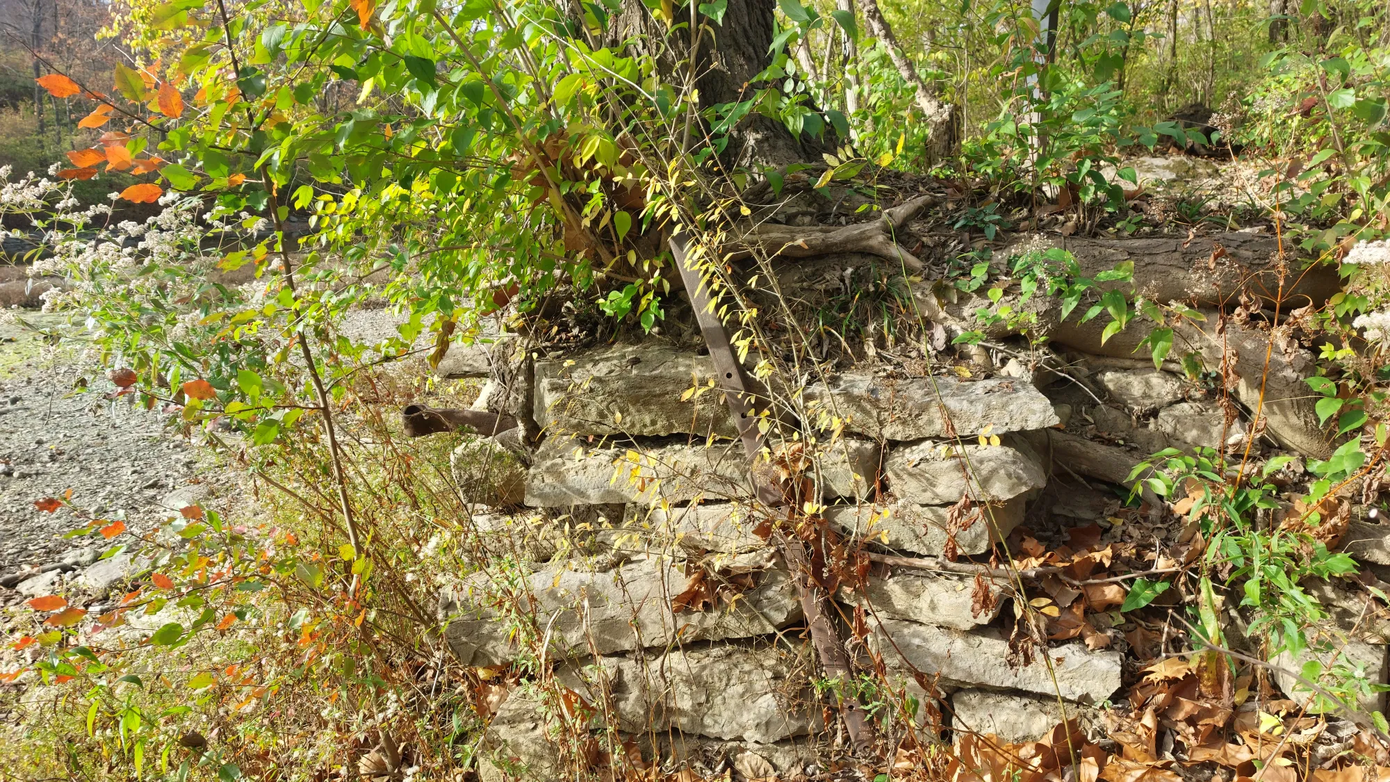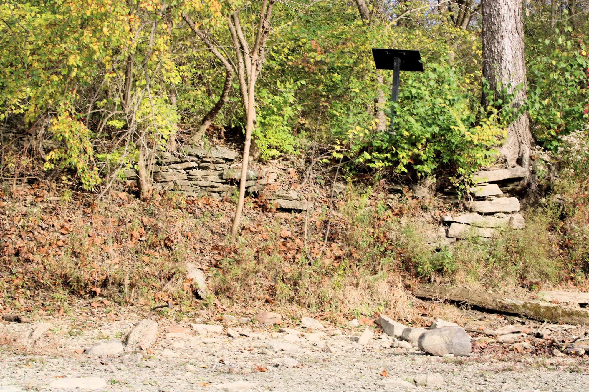 The recreated cemetery can be found just off the Overlook Trail. It belongs to some of the area’s earliest settlers. Joseph and Sally Pool arrived from New York in 1812, and they and their 13 children farmed the land that is now part of Highbanks. No one knows where they’re buried. The headstones were found stacked just south of the park and moved to this location in 1981.