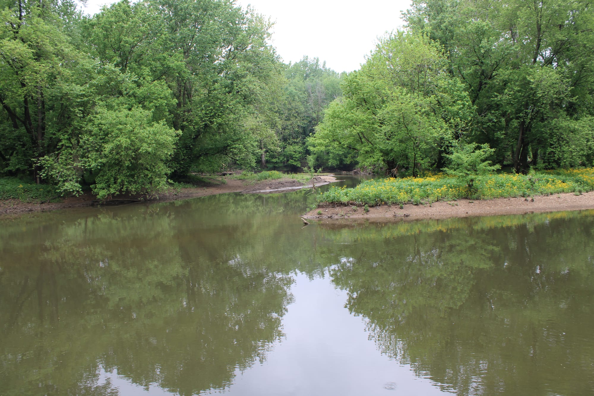 Three Creeks sits where Alum Creek, Big Walnut Creek, and Blacklick Creek all dump into the Scioto River. It's a flat, easy walk — perfect for families or days when you want movement without effort. The wildlife viewing is the real draw. I've seen great blue herons, kingfishers, deer, and once a bald eagle cruising low over the water. The paved and unpaved trails loop through bottomland forest and along the creek banks.