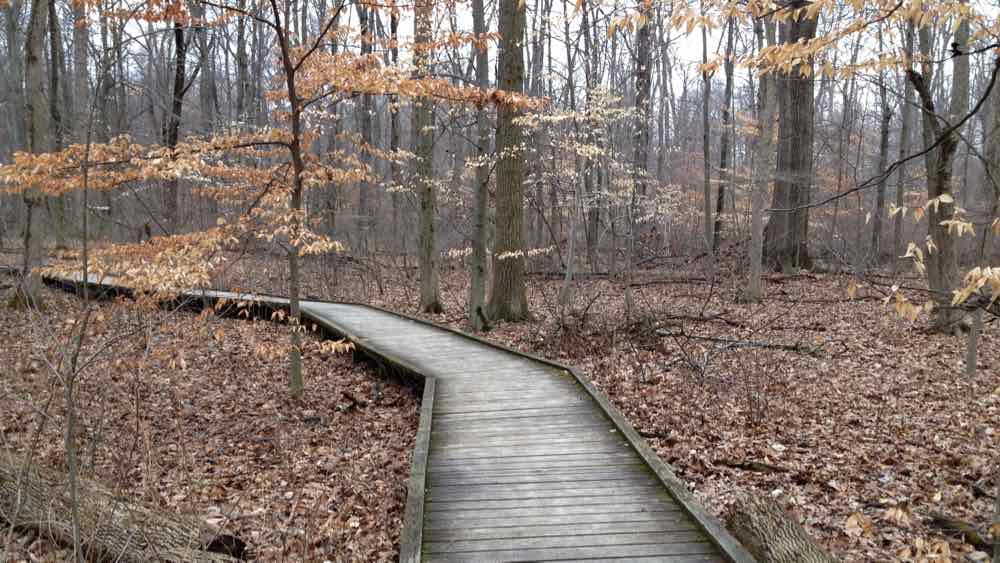 Near Groveport, tucked behind a residential area you'd never think to explore. But Chestnut Ridge has a forested ridgeline with actual overlooks — unusual for flat Franklin County. The main loop follows the ridge through mixed hardwoods, and there's a spur trail that drops down to a small creek valley. It's compact, but it packs a lot of scenery into a short walk.