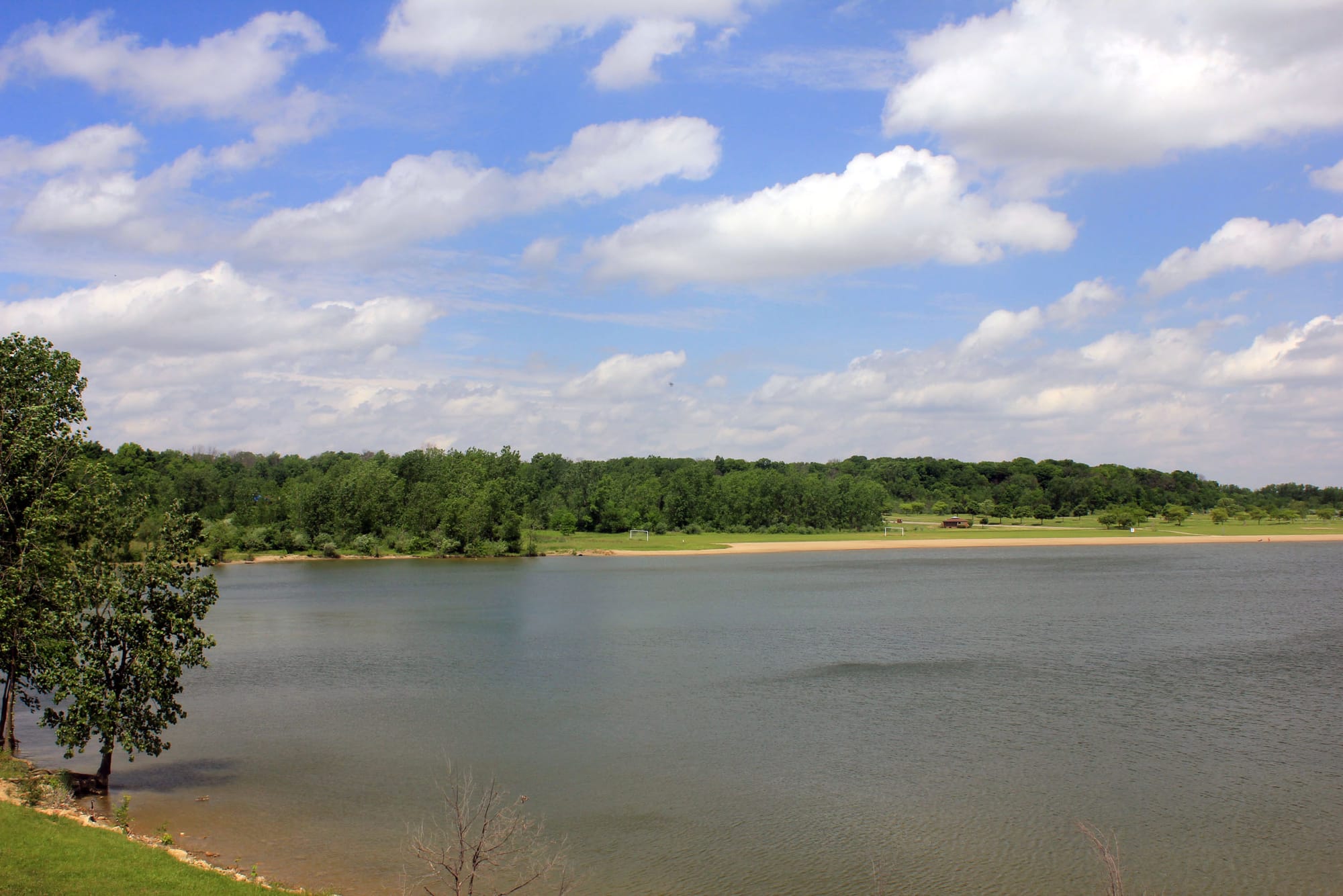 The big draw here is the reservoir — 3,387 acres of water surrounded by rolling hills and mixed forest. The hiking trails loop through wooded ridges above the lake, with occasional views down to the water through the trees. There's also Ohio's largest inland beach if you want to swim after your hike. Dog owners love the dedicated off-leash dog beach area. This one's a full-day destination if you want it to be.
