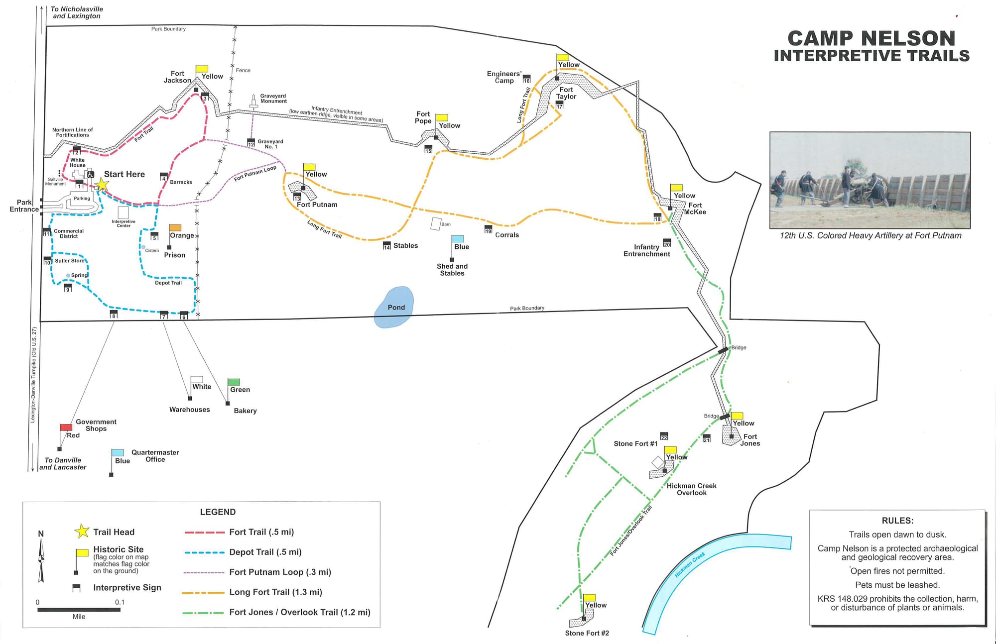 Camp Nelson played a significant role in the abolition movement and the fight for civil rights. Check out any informational plaques or signs along the trails to learn more about this important chapter in history.