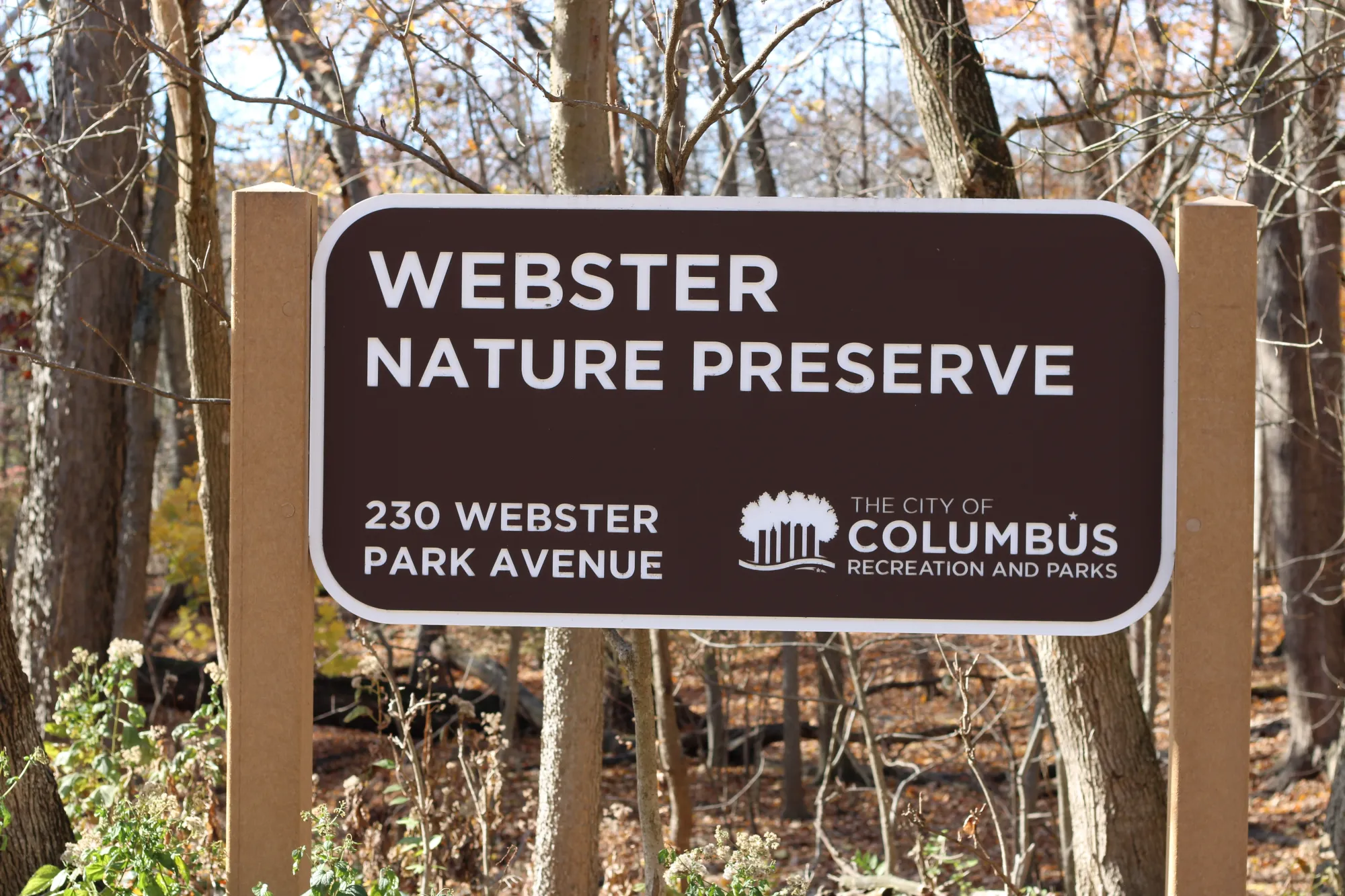 Webster Nature Preserve is one of the oldest parks in Columbus. The land was gifted to the city in 1909 and officially dedicated in 1926 as a “bird sanctuary and flower preserve.” This charming spot is a small forested haven, complete with an unnamed tributary of the Olentangy River.