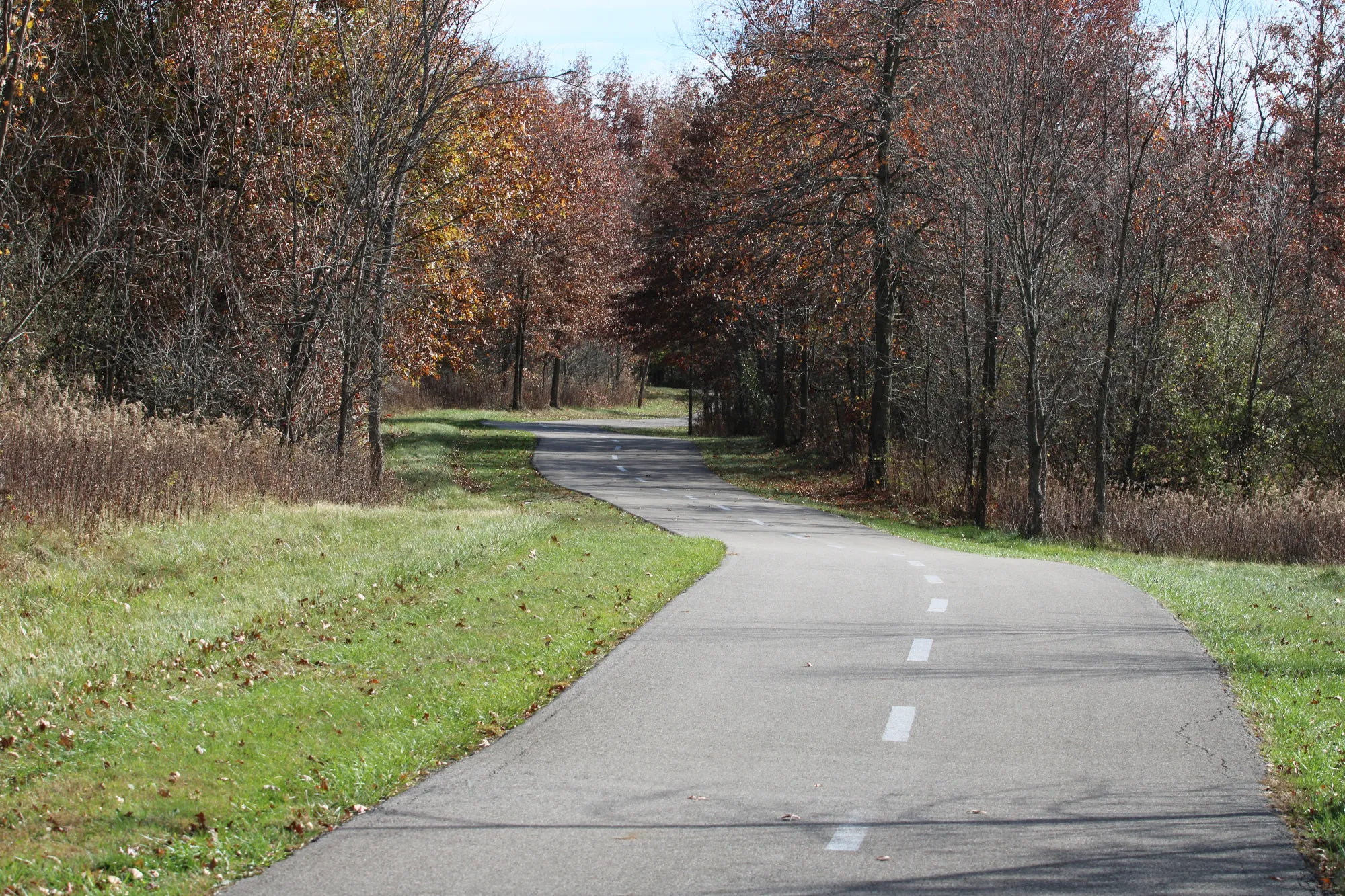 Goes through woods and fields and leads to Honda Wetland Education Center.