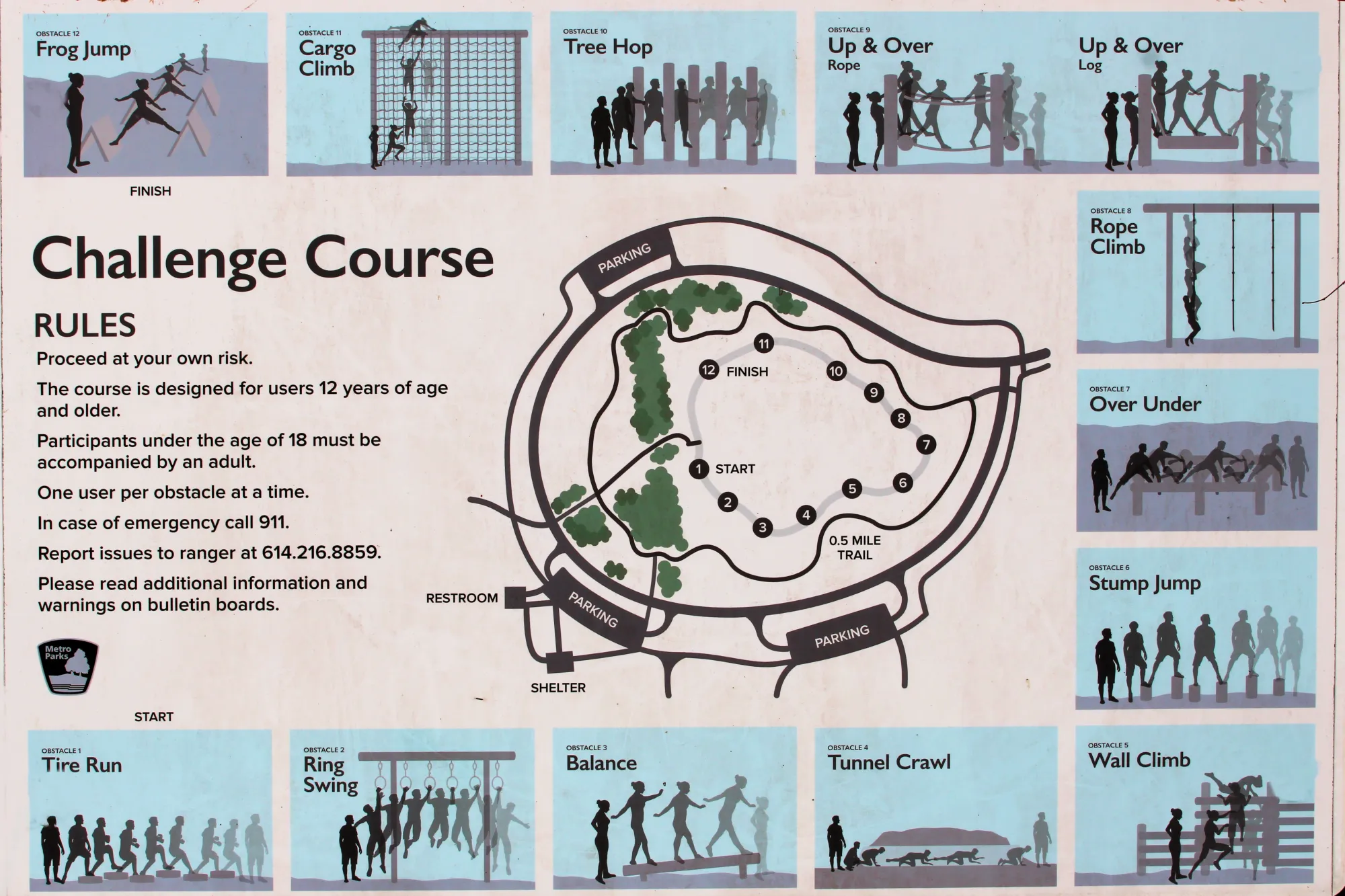 Except for the fact that a metro park includes the word "ridge" in it and has no ridges, it is a great metro park to visit. The obstacle course is a nice addition. I wanted to try several obstacles, but it was before I had my knee replaced.