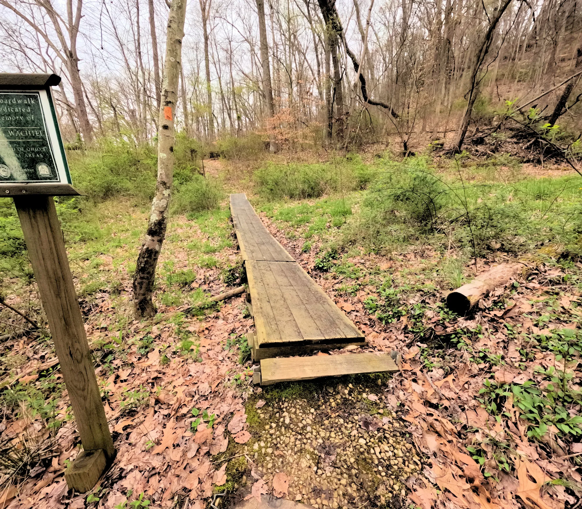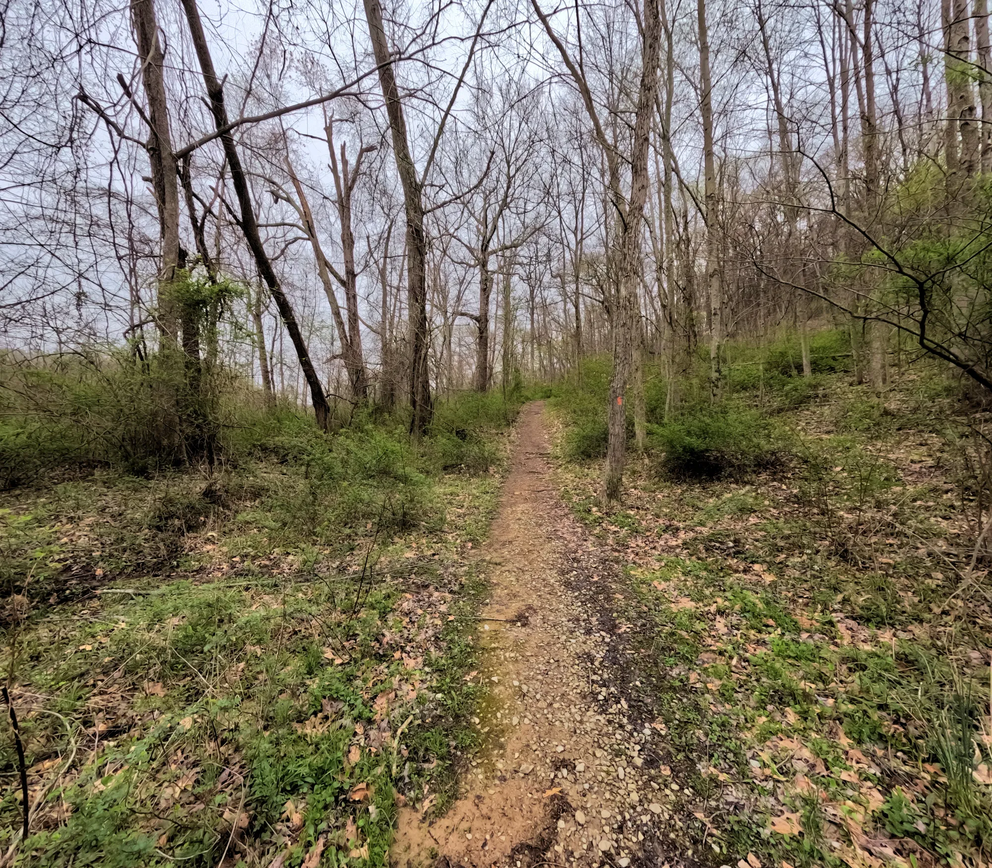 The website mentions 1.2 miles of trail, but it actually measured 2.25 miles, including a stroll through the pollinator gardens near the parking lot. Technically, there are 3 trails: the orange loop, the blue loop, and the nature walk thru the flower area.