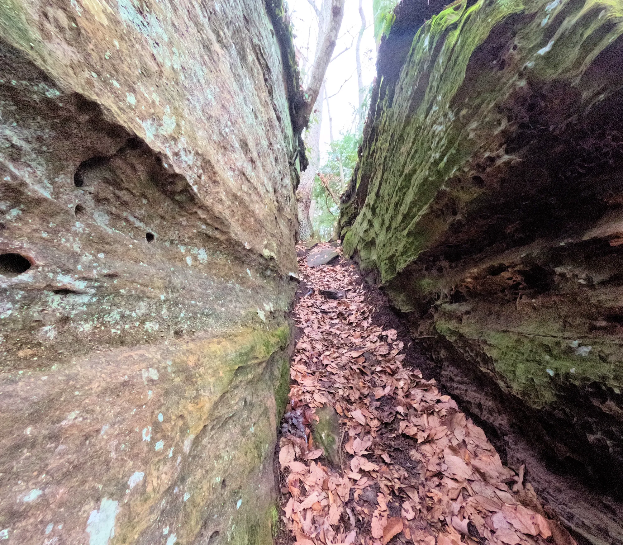 The trails are labeled as "strenuous," so sturdy hiking shoes are a must (flip-flops definitely won't cut it). Depending on your fitness level, you might find them more moderate. The path includes some uphill climbs and a tight squeeze through rocky cliffs. There are a few steep drop-offs.