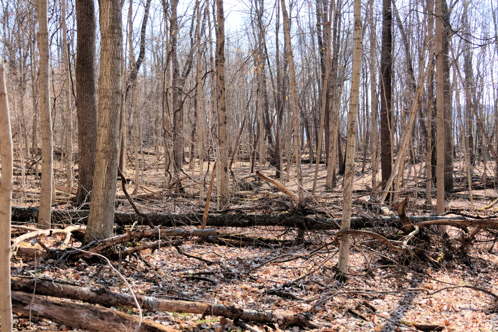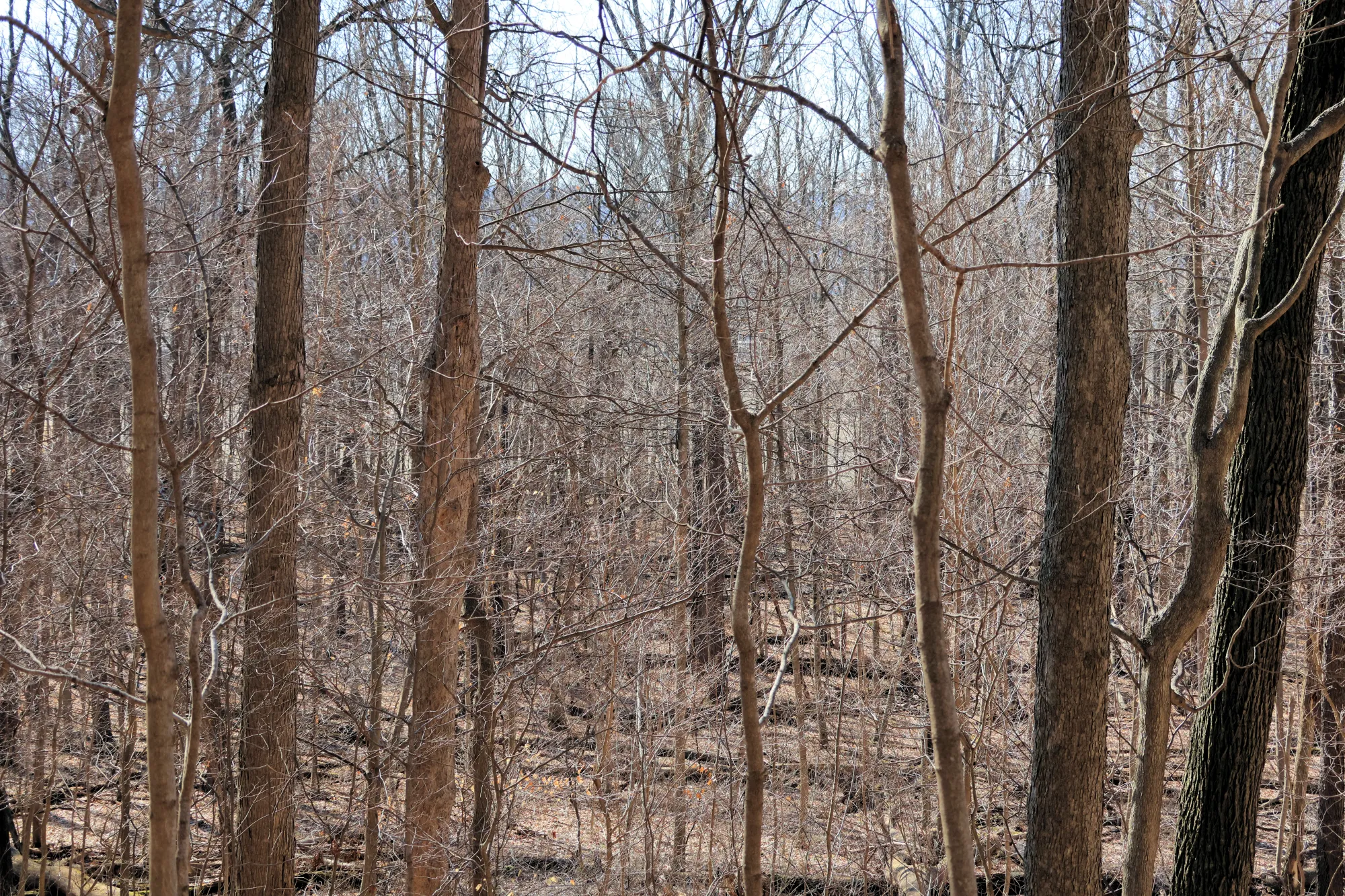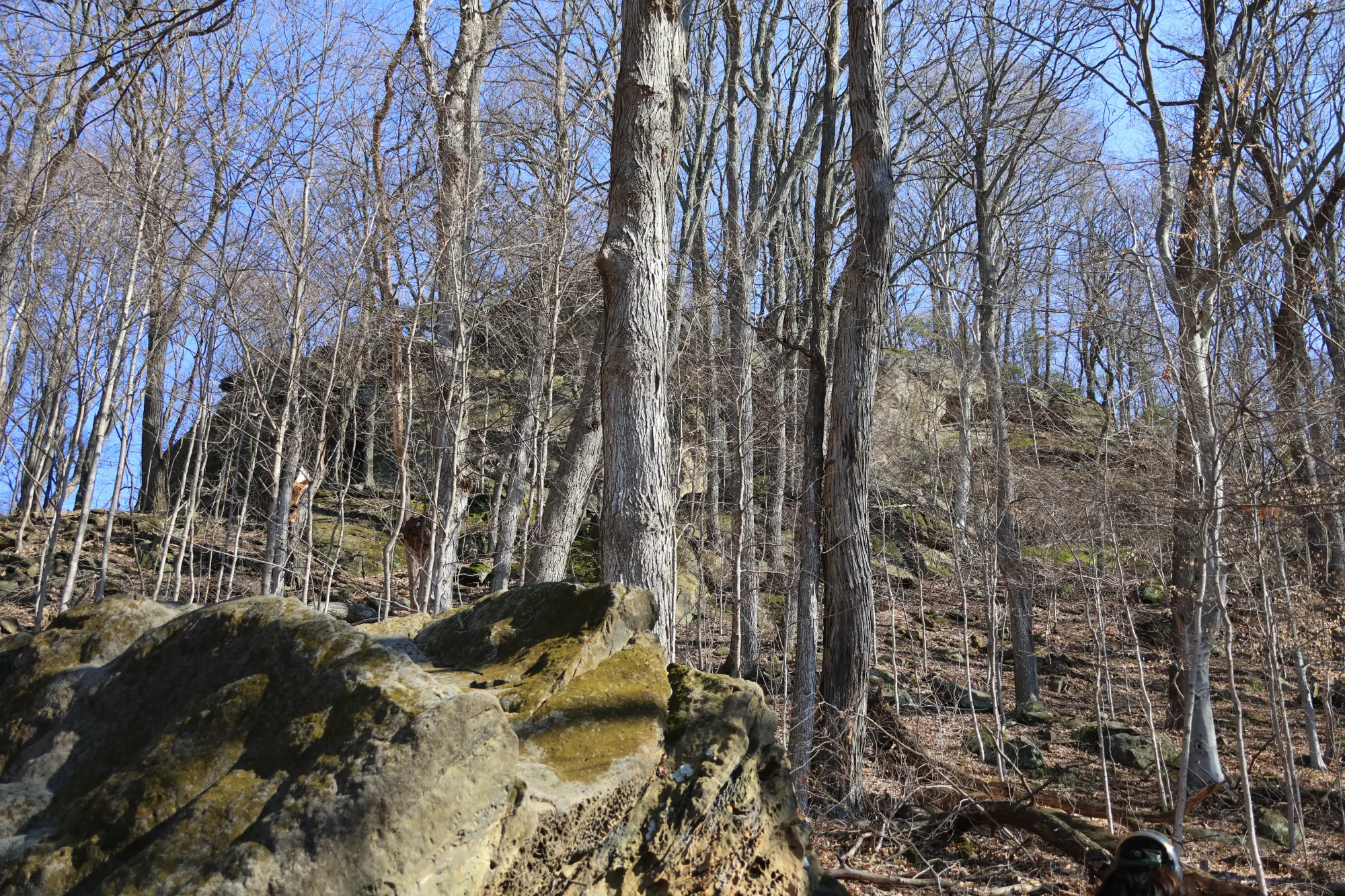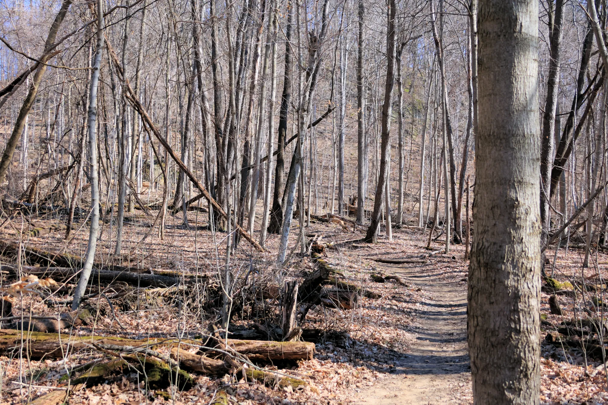 At Shallenberger, these forces shaped Allen Knob, a 240-foot sandstone peak with sweeping views of the central Ohio plains, and the smaller Ruble Knob. The landscape also shows signs of the last ice age, when glaciers over a mile thick reached just northwest of here. While the tops of the knobs likely stayed ice-free, their bases were buried under glacial debris called an end moraine. The thin, rocky, nutrient-poor soils atop the knobs support plants like chestnut oak, mountain laurel, and ferns such as polypody, ebony spleenwort, and walking fern—species more common in the Appalachians—while few other woody plants manage to grow there.