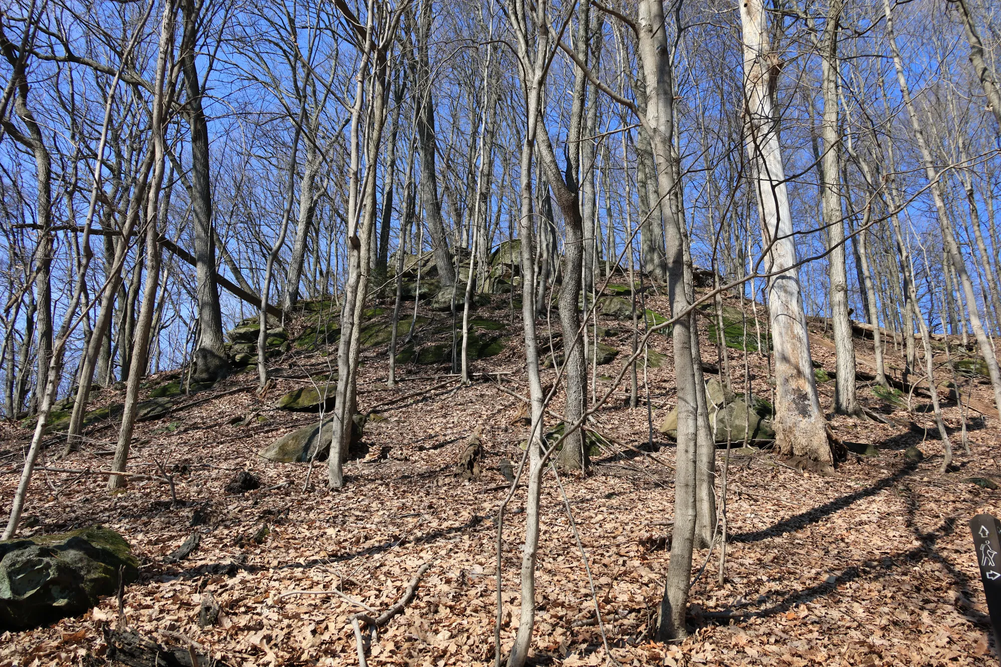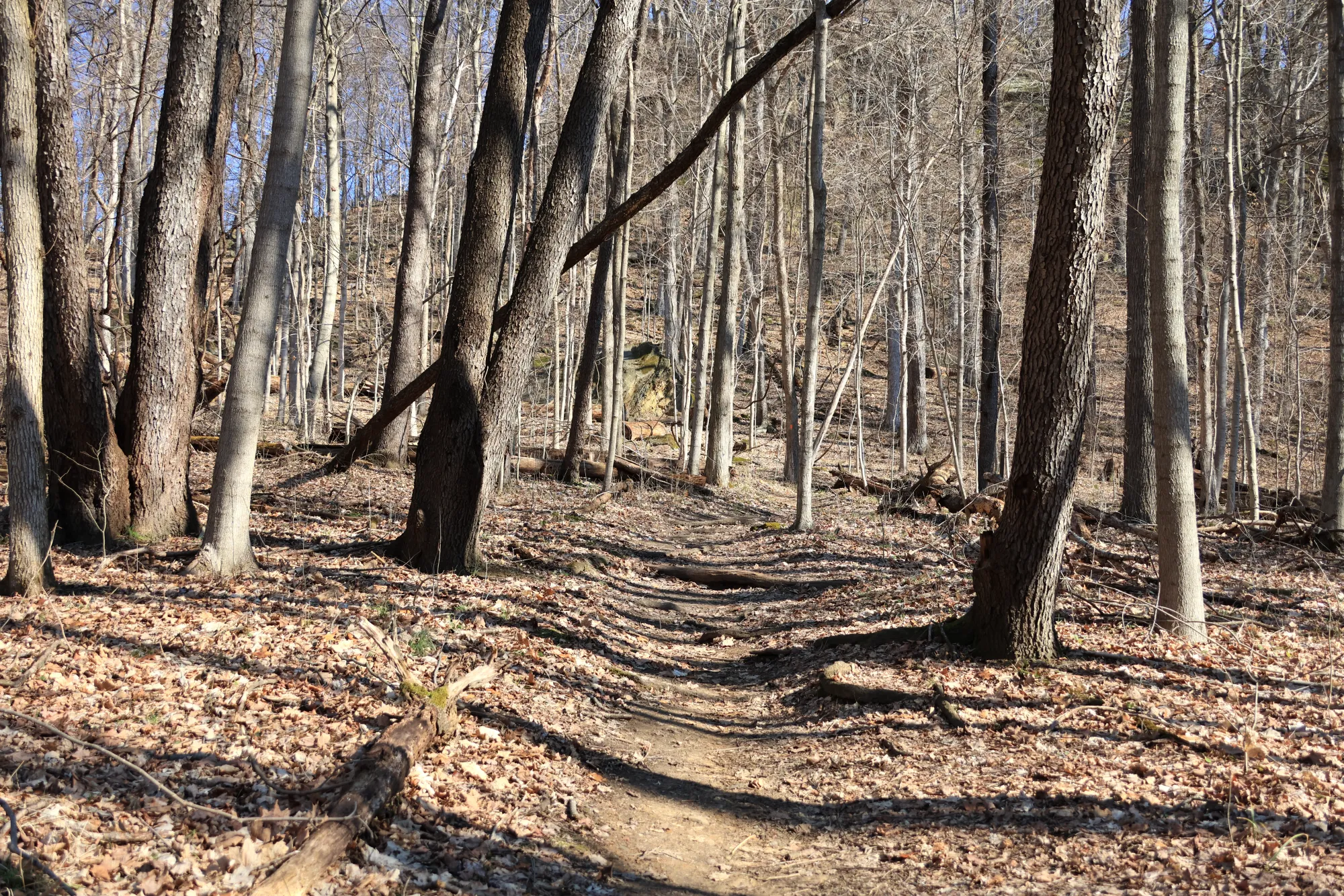 Shallenberger offers a scenic 1.5-mile loop that winds around and climbs both Allen and Ruble Knobs. The unmarked paths are easy to follow and feature optional side trails leading to viewpoints atop the knobs. The hike is easy to moderate, with some elevation gain along the main loop. Expect uneven terrain with roots and rocks, so boots or sturdy shoes are a good idea. The figure-eight-shaped trail takes you through mixed hardwood forests, past boulder outcroppings, and over gentle to moderately steep slopes. In spring, colorful wildflowers and blooming mountain laurel add extra charm to the walk.