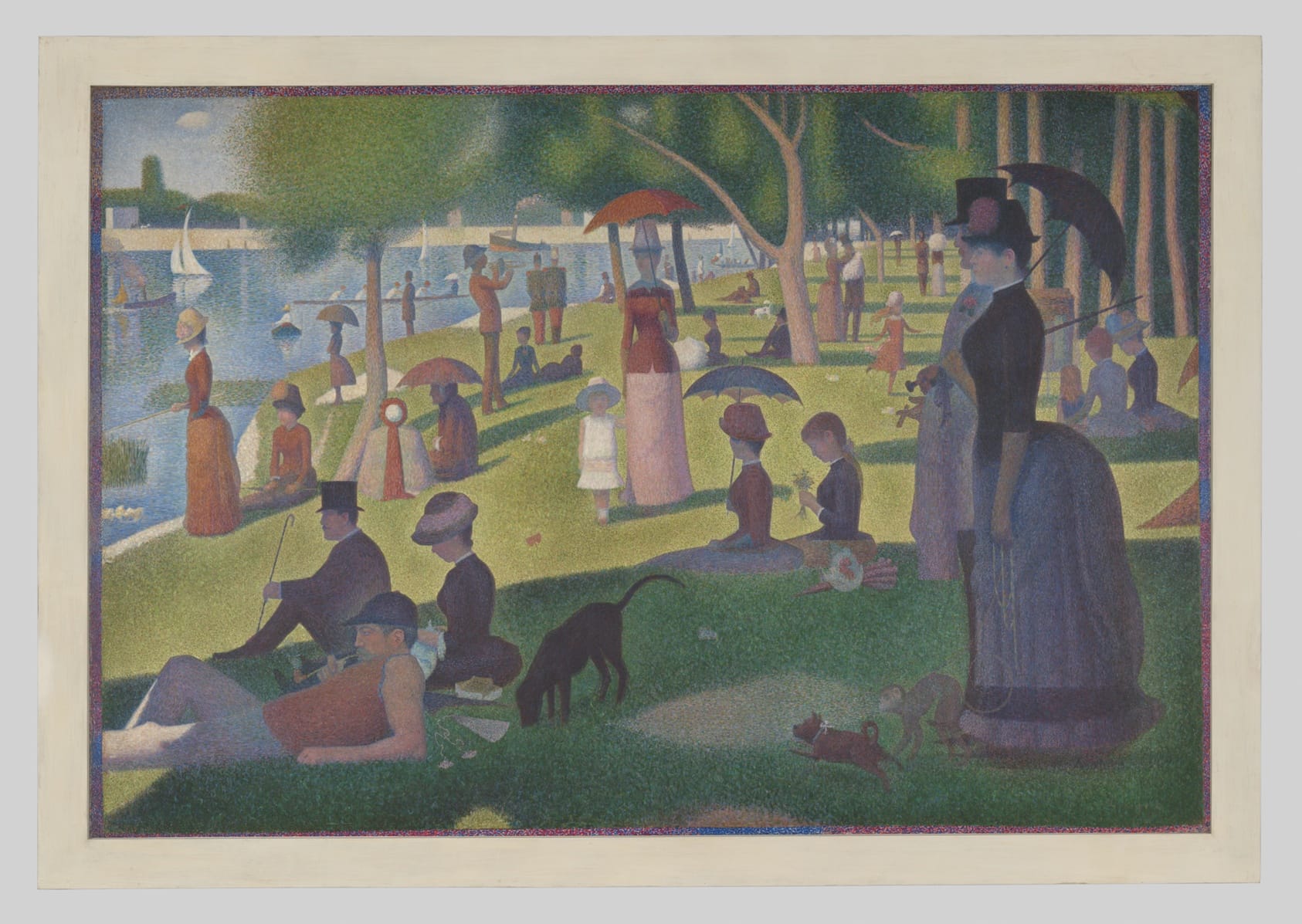 It is located in downtown Columbus. It features topiaries trimmed into life-size shapes of men, women, children, animals, and boats and arranged to resemble a painting. Specifically, there are topiaries of 54 people, eight boats, three dogs, a monkey, and a cat. It also hosts 220 trees, including 35 different species. A cast-iron fence surrounds the space.