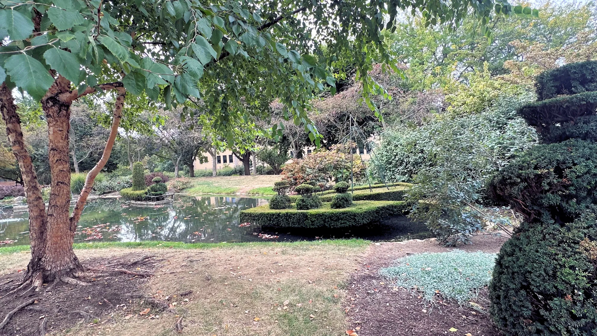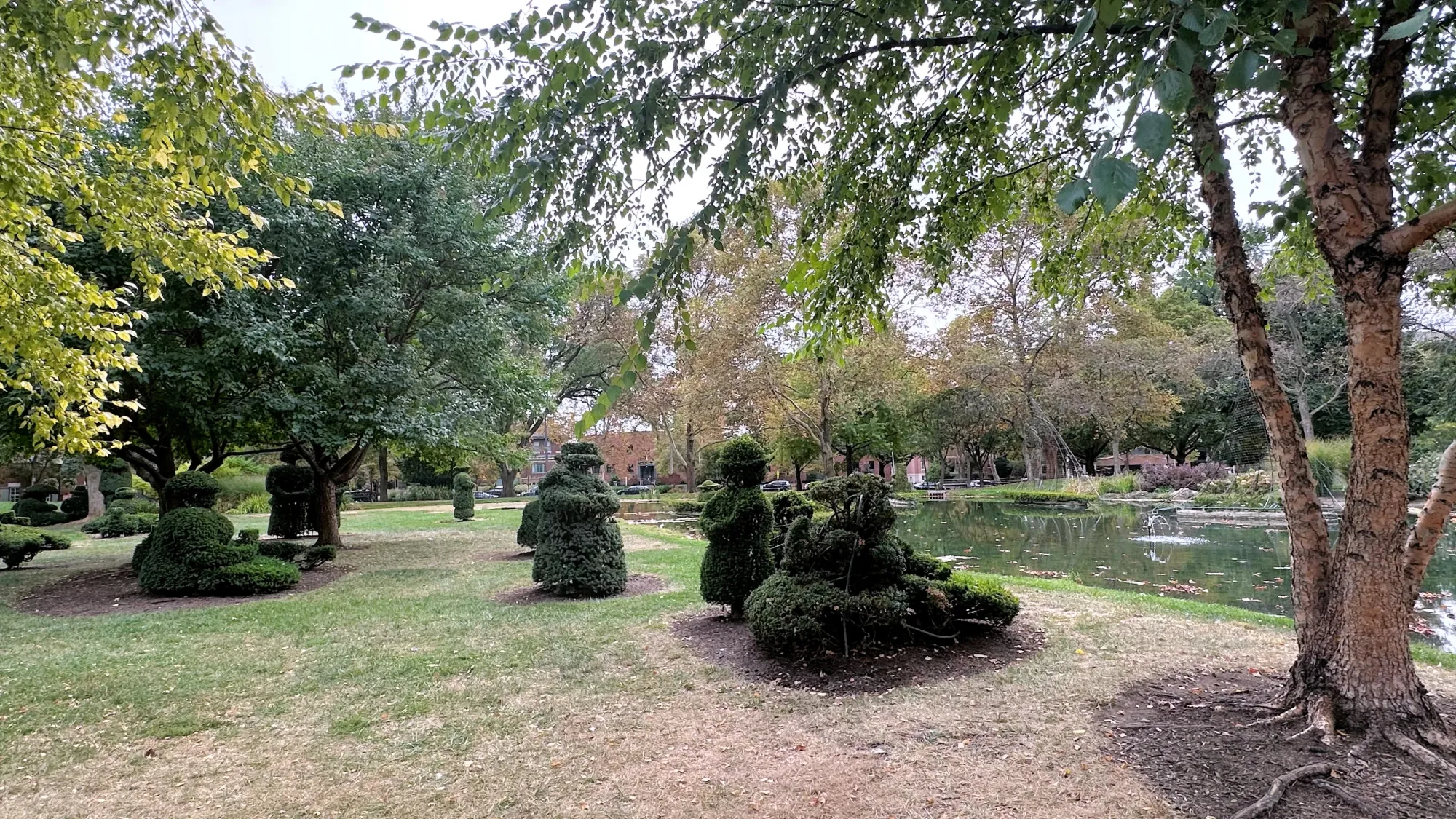 The park features paved paths that loop through the garden and around the pond, making it both accessible and stroller friendly. There’s a circular path within the park, along with offshoots leading out on the east side. The grounds include hills and a pond, and given the park’s size, you can likely complete a circuit in 15–30 minutes, depending on how often you pause to take in the scenery.
